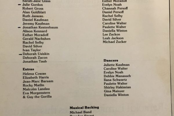 I was in my final year at university. It was overambitious but London chaverim stepped up and 100 people got involved – as actors, singers, dancers, musicians, stage hands, costume makers. You can see their names in the Programme and there they are in the pictures, young, ambitious, idealistic….